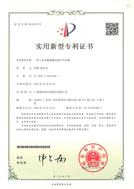 Utility model patent certificate2