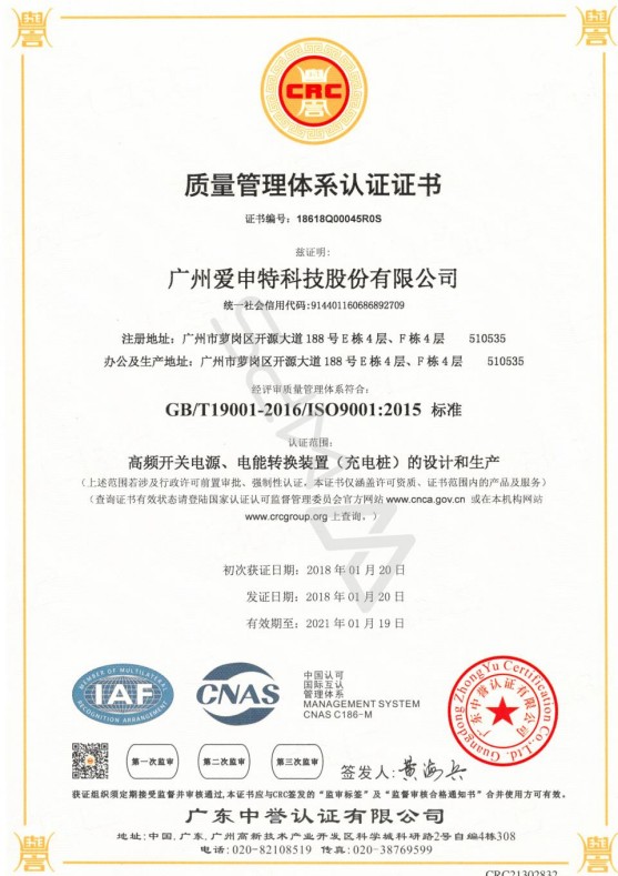 Quality Management System Certification Certificate