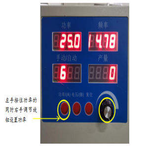 4)功率设置:在主界面,按住“功率(A)”按钮的同时,旋转旋钮,配置功率,焊接功率设置在25%~30%,音波检测功率设置在10%。